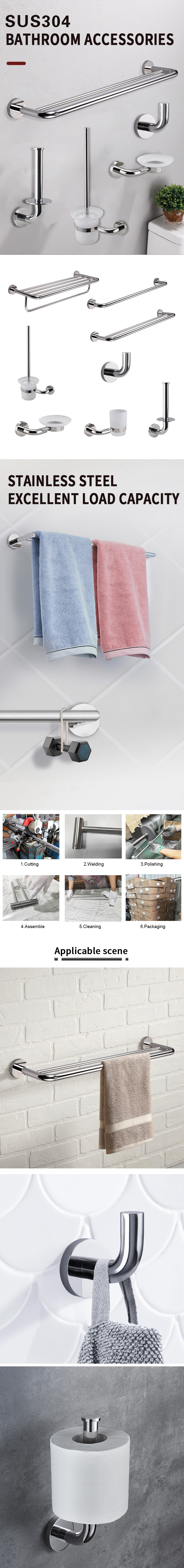 歐洲設計(jì)不(bù)鏽鋼鍍鉻 6 件(j÷←≤iàn)酒店(diàn)浴室配件(jiàn)套裝